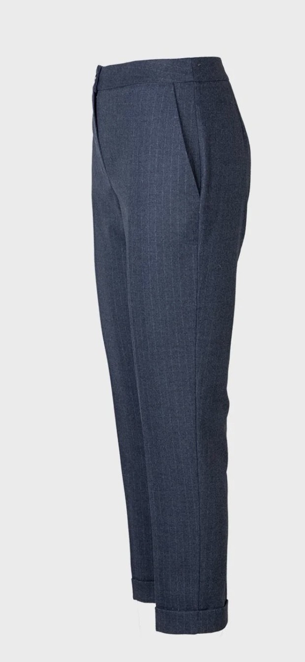 Pantalone newyork in poliviscosa gessato con tasche,allacciatura davanti e risvolto sul fondo