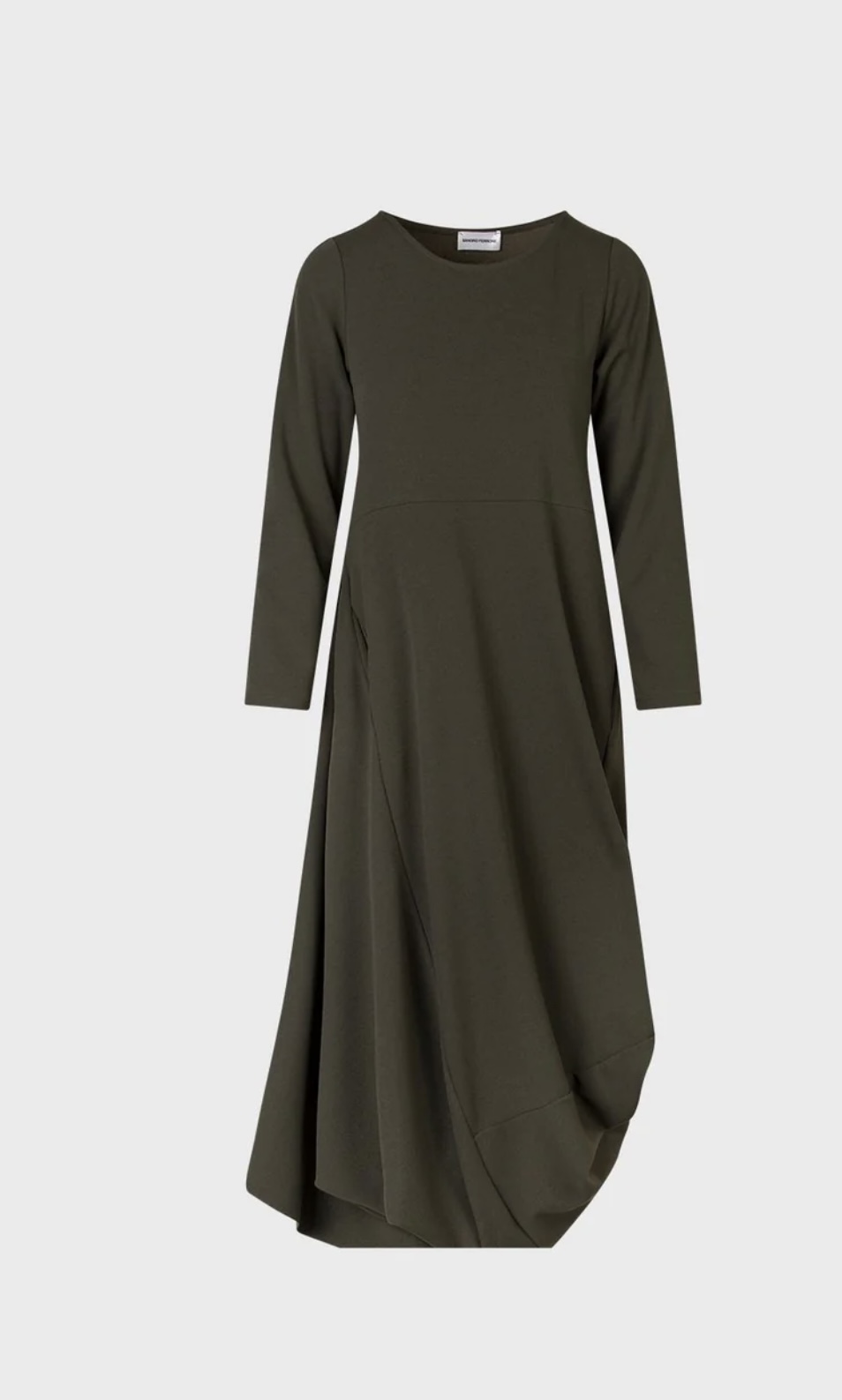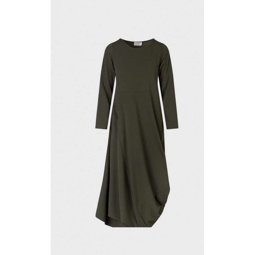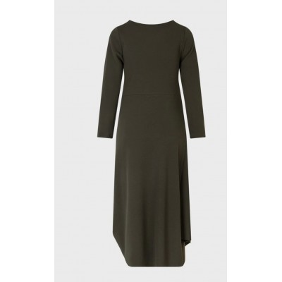 Abito in maglia crepe con scollo tondo,maniche lunghe e gonna asimmetrica