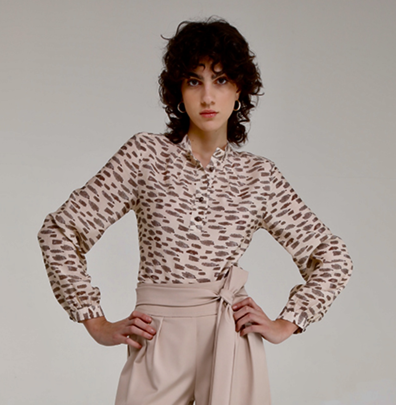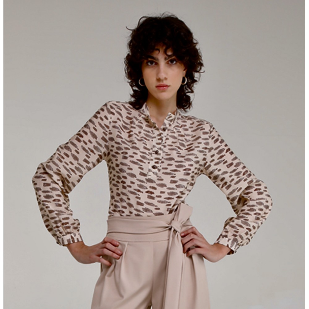 Camicia stampata rif.Malù.questa elegante camicia e carattterizzata da un raffinato motivo stampato nei toni neutri,perfetto p