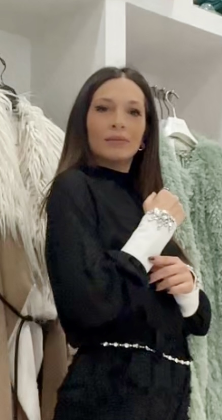 Blusa ampia in chiffon con colletto alto a pistagna chiuso da bottoncino nel retro
