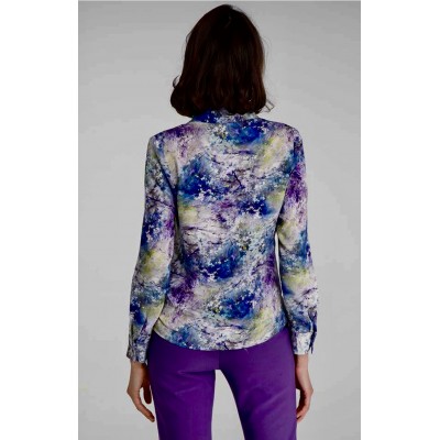 Camicia in tencel stampa aquerello collo camicia,maniche lunghe con polsini chiusura con bottoni.