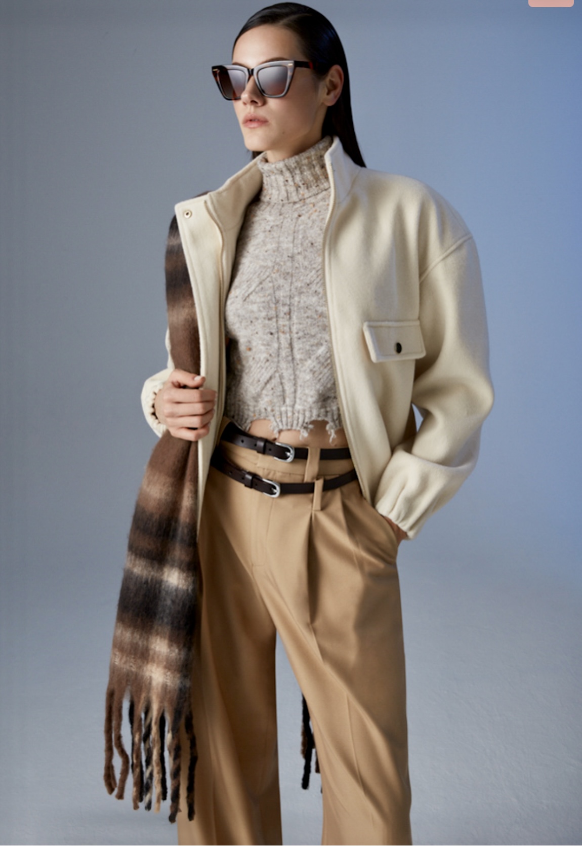 Giacca Corta in Panno Misto Lana REF. TRUMAN: Questa giacca corta è realizzata in un panno misto lana, che garantisce calore e comfort. Il design moderno presenta una chiusura frontale con bottoni ed elastico in vita, aggiungendo praticità e stile. Le maniche hanno polsini elastici per una vestibilità aderente e il collo alto offre ulteriore protezione contro il freddo. La giacca è ideale per essere abbinata a jeans e stivali per un look casual chic, perfetto per le giornate più fresche.