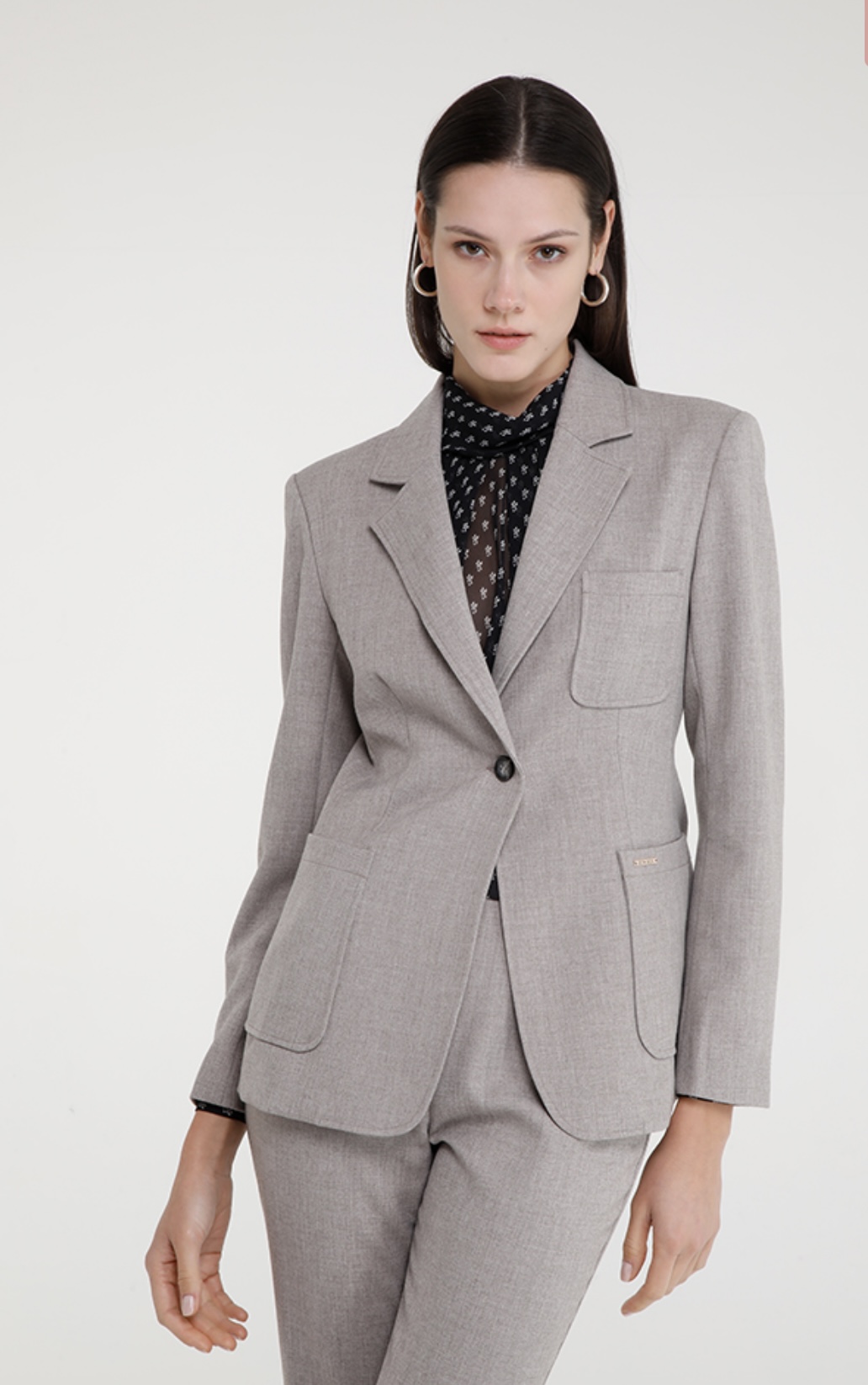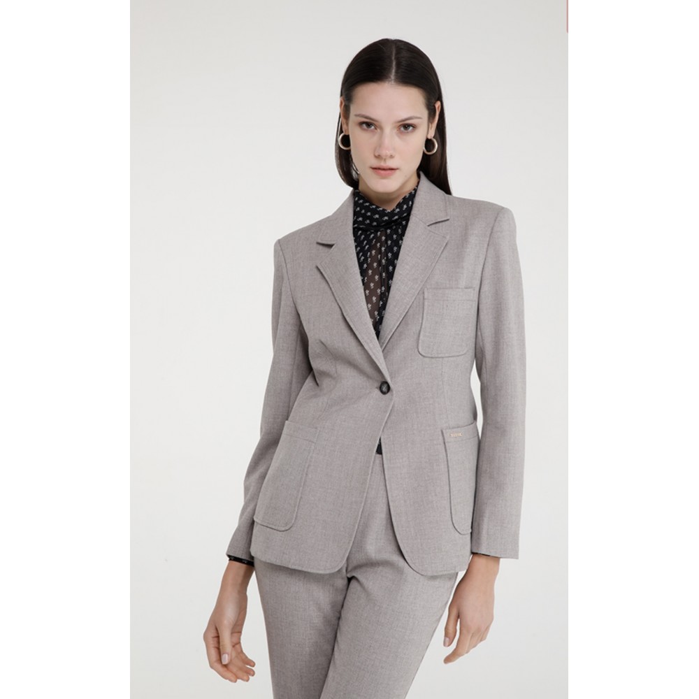 Giacca un bottone sfiancata con tasconi frontali, riferimento ANANG. Questo capo elegante offre una vestibilità impeccabile e sagomata, ideale per valorizzare la silhouette. La giacca presenta un unico bottone per una chiusura sobria e raffinata, mentre i tasconi frontali aggiungono un tocco di praticità e stile. Il design classico del colletto e delle maniche lunghe rende questa giacca versatile, perfetta per un look professionale o per eventi formali. Può essere abbinata ai pantaloni o alla gonna coordinati per un completo sofisticato o indossata sopra un abito o un top per un look chic e moderno. Un must-have nel guardaroba di ogni donna alla ricerca di eleganza e funzionalità.