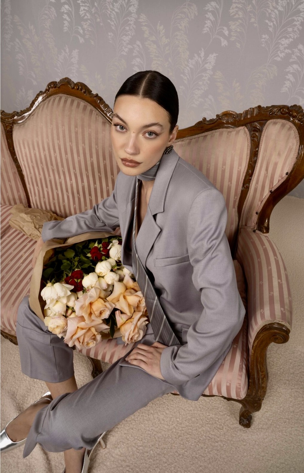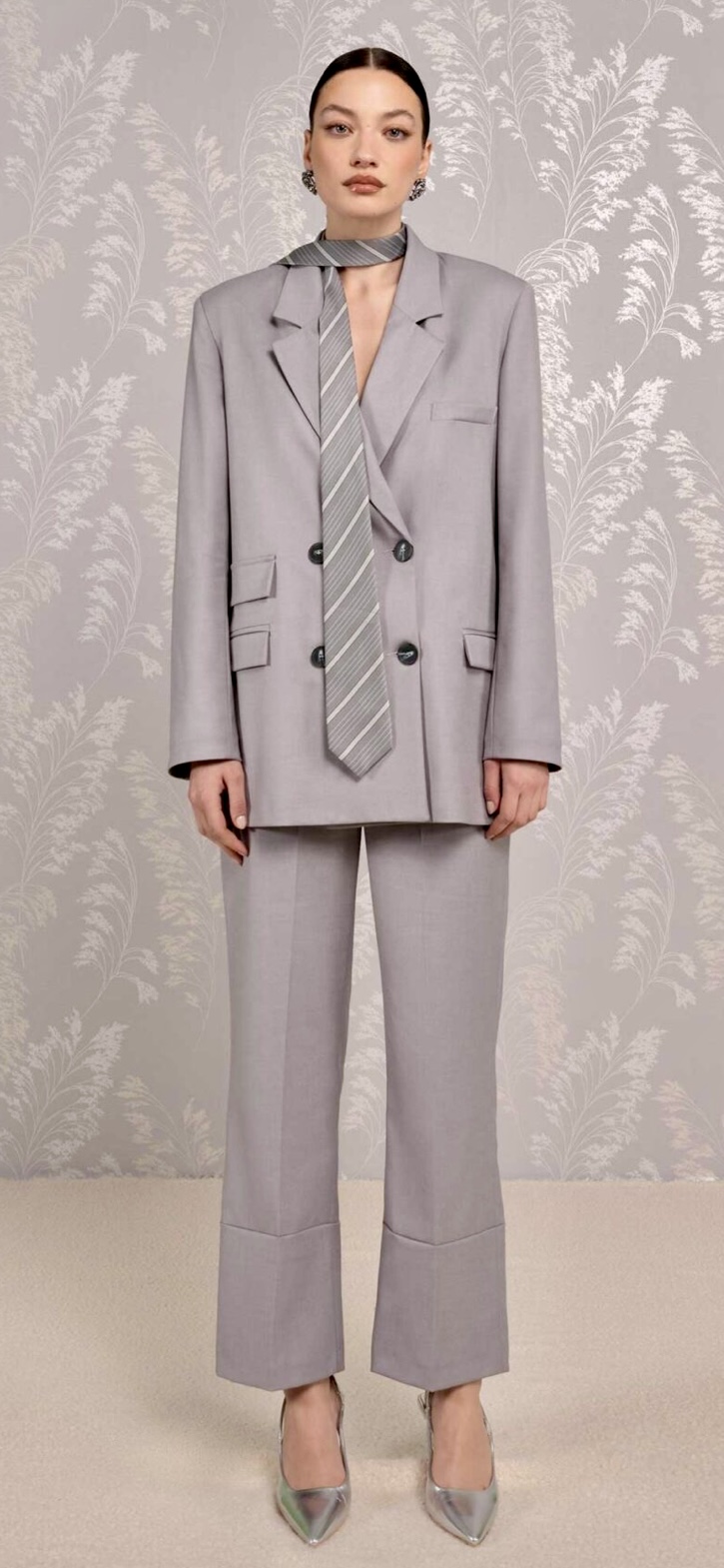 Giacca Over doppiopetto con collo revers.Tasche con pattina e spalline imbottite.Chiusura frontale tramite 2 bottoni, fodera int