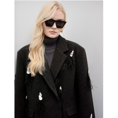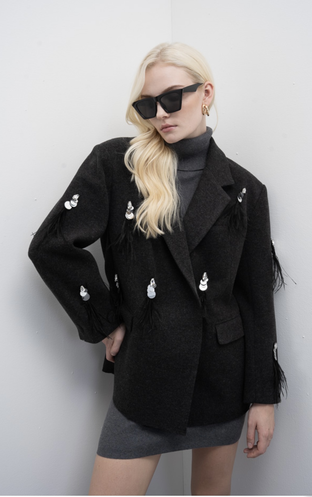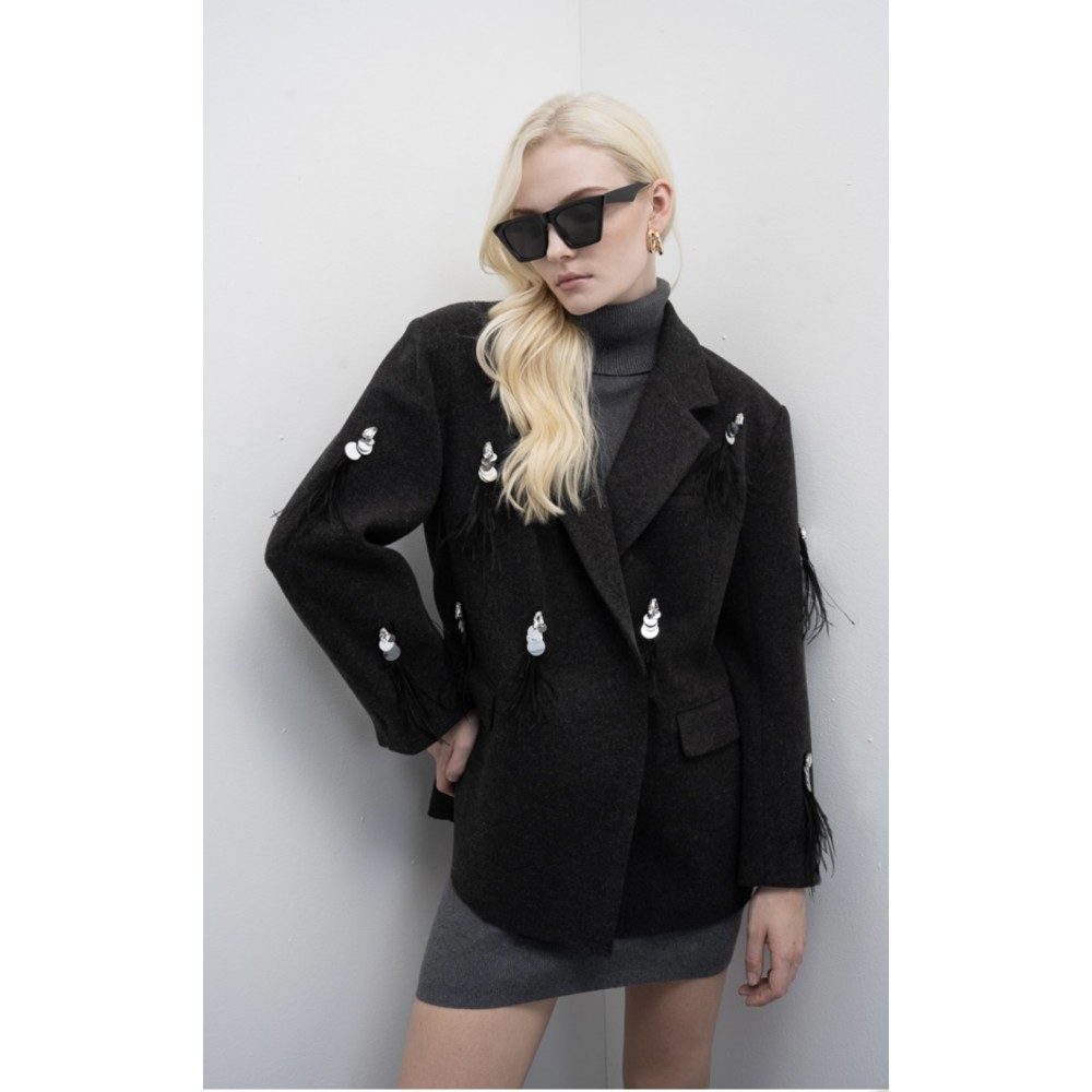 Giacca strutturata con applicazioni di gioielli e piumeDesign sofisticato con dettagli decorativi su maniche e corpoRever classi