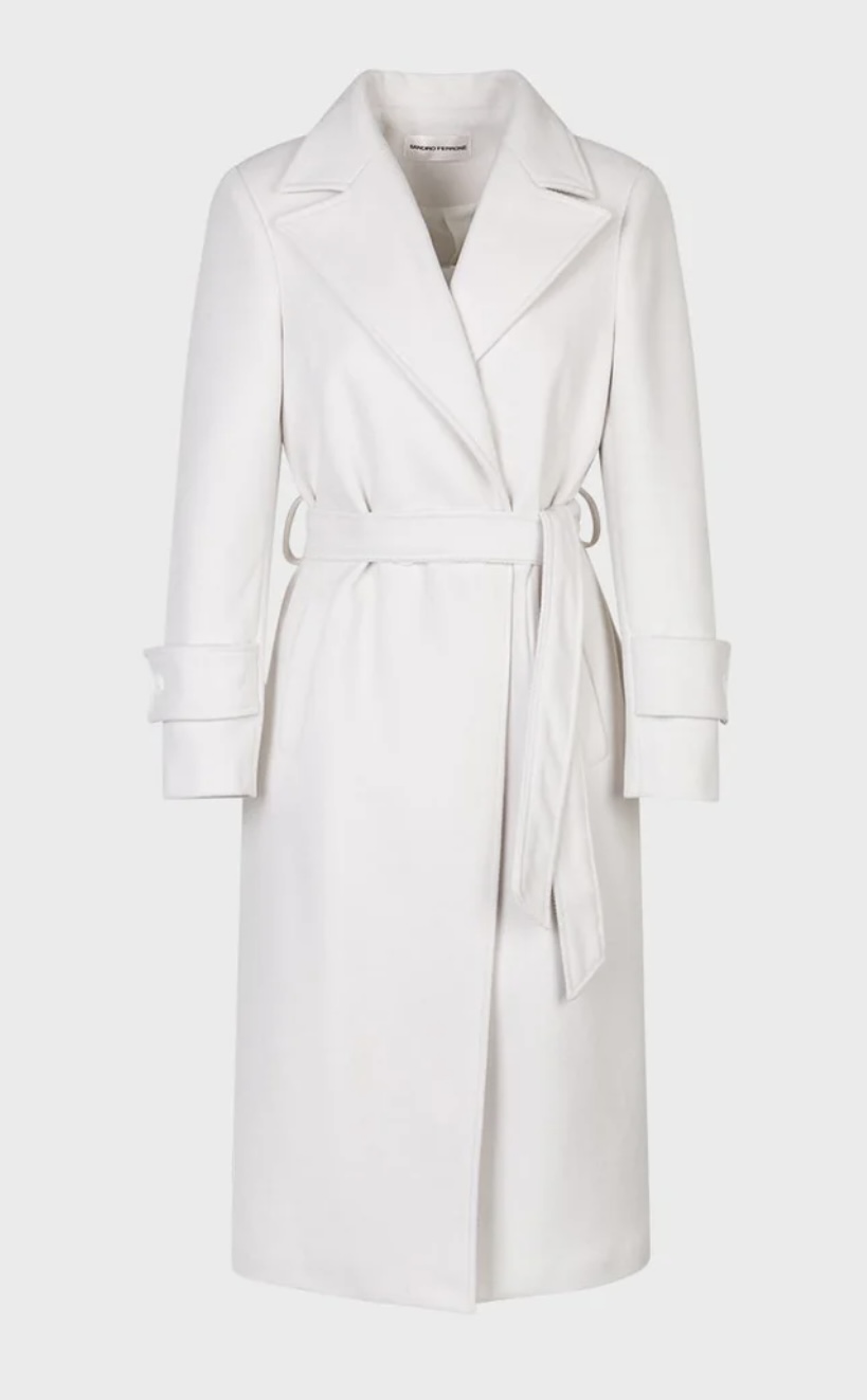 Cappotto vestaglia in poliviscosa con allacciatura doppio petto e cintura