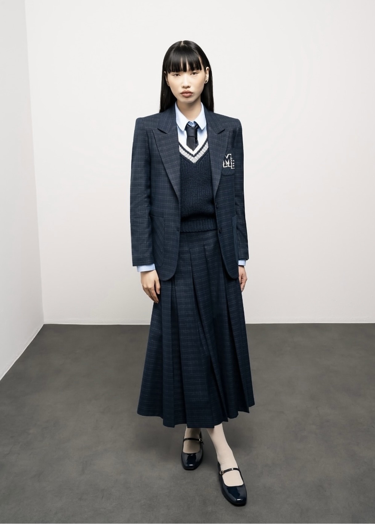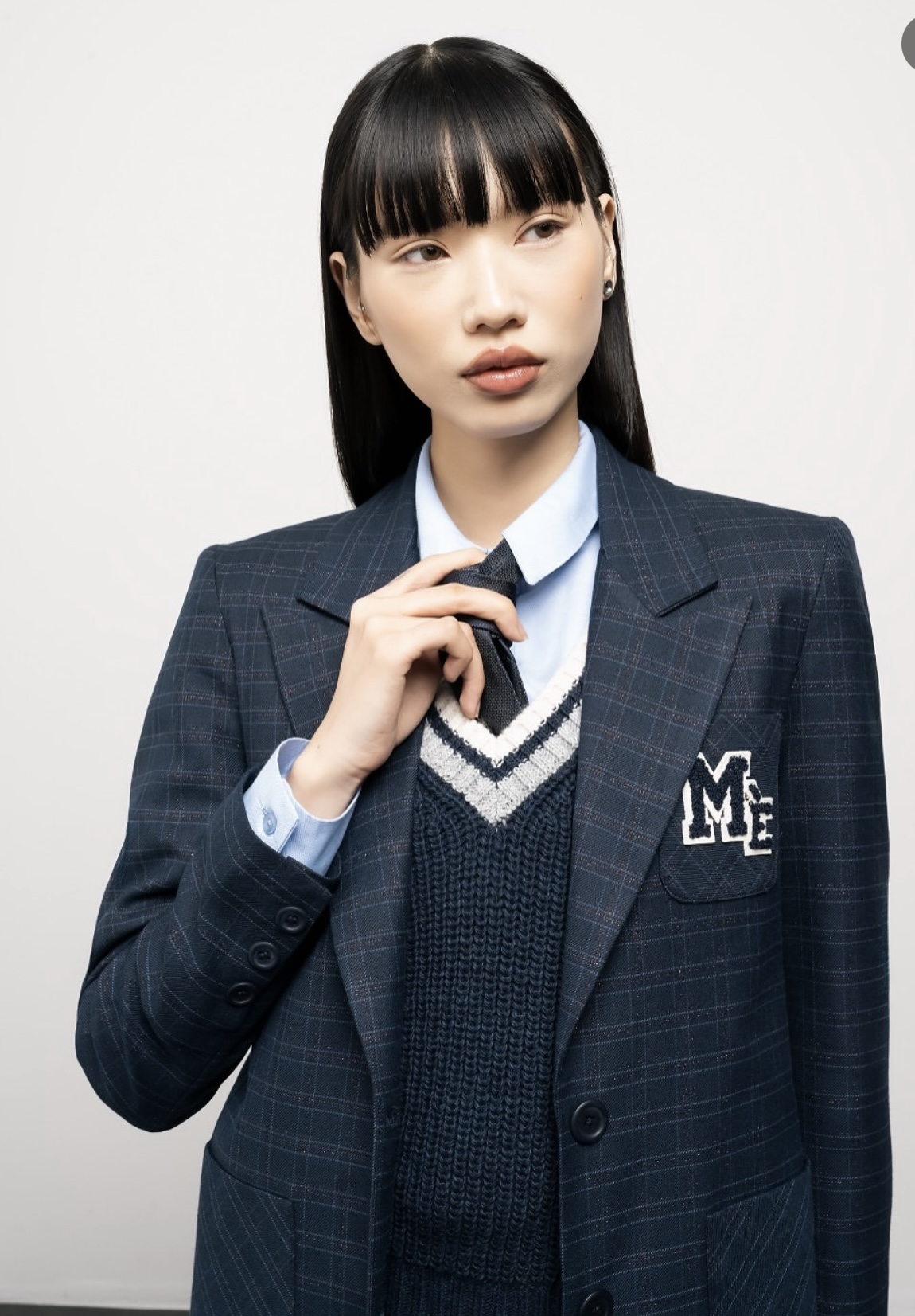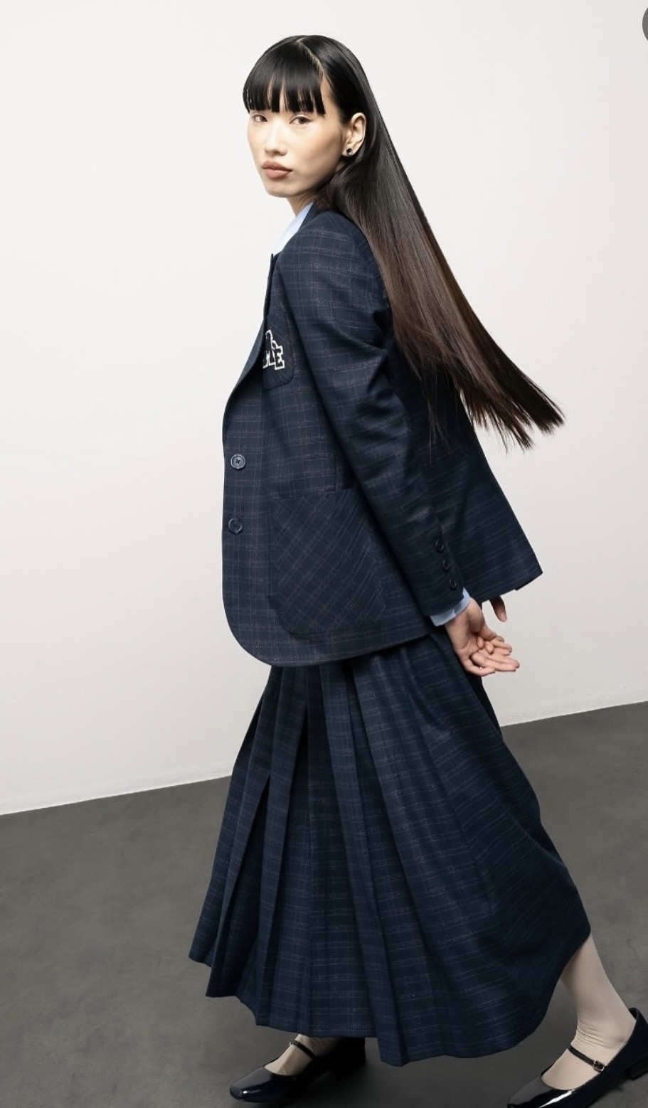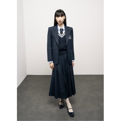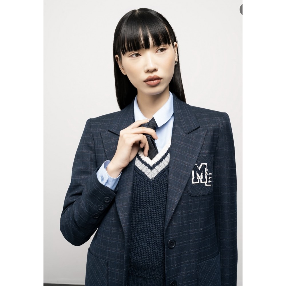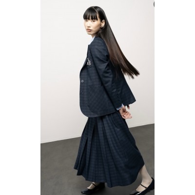 Giacca a quadri in lana lurex, con tasche a toppe, interamente foderata, manica lunga e chiusura frontale con bottone, spacco dietro.