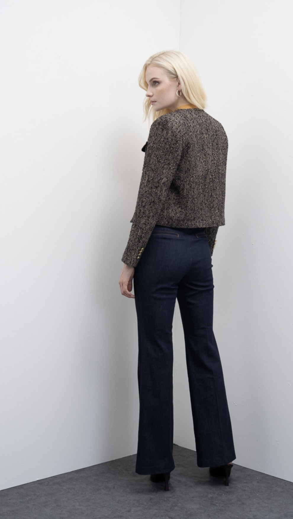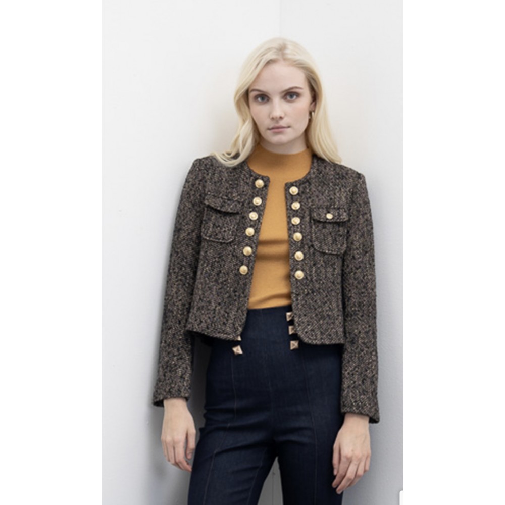 Giacca corta in tweed di lanaDesign classico con texture sofisticataCollo rotondo senza reversChiusura frontale con bottoni dora