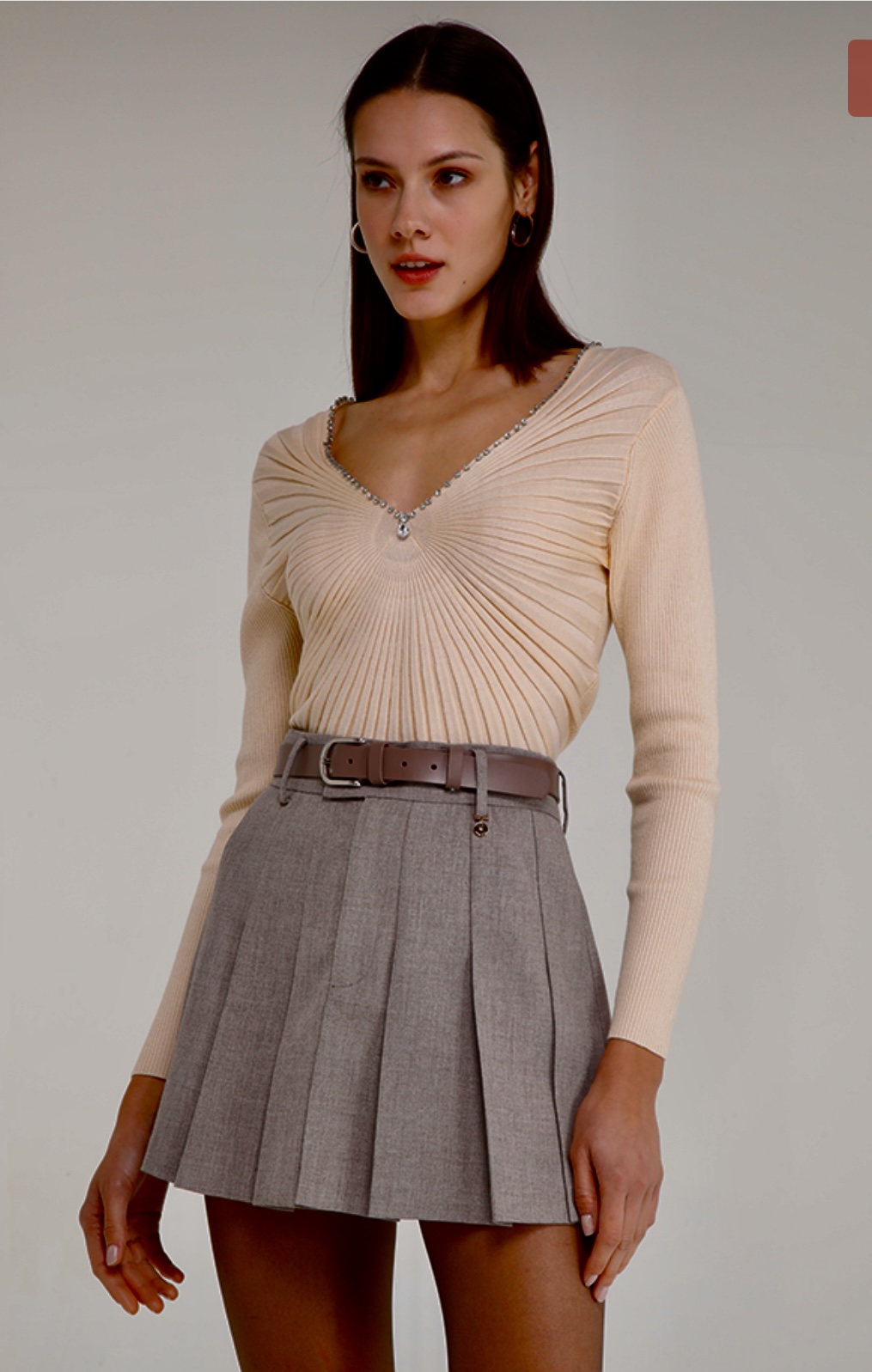 Gonna corta a pieghe REF. TACOS: Questa gonna corta, dal design elegante e moderno, è caratterizzata da pieghe strutturate che a