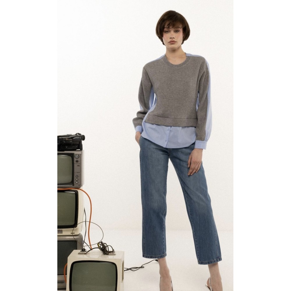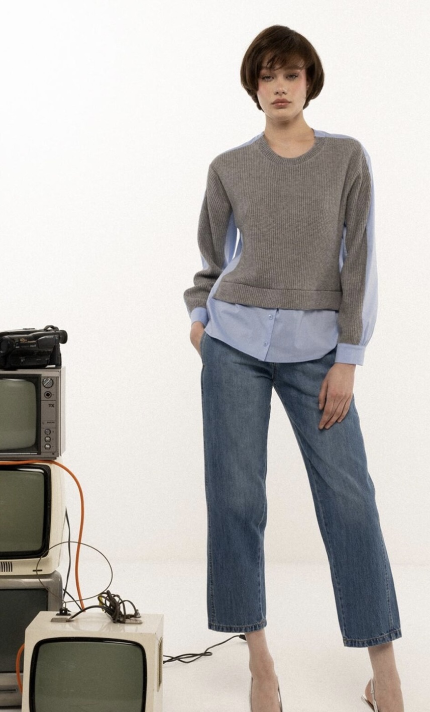 Scollo tondo, maniche lunghe con il dettaglio sul fondo e retro effetto camicia
