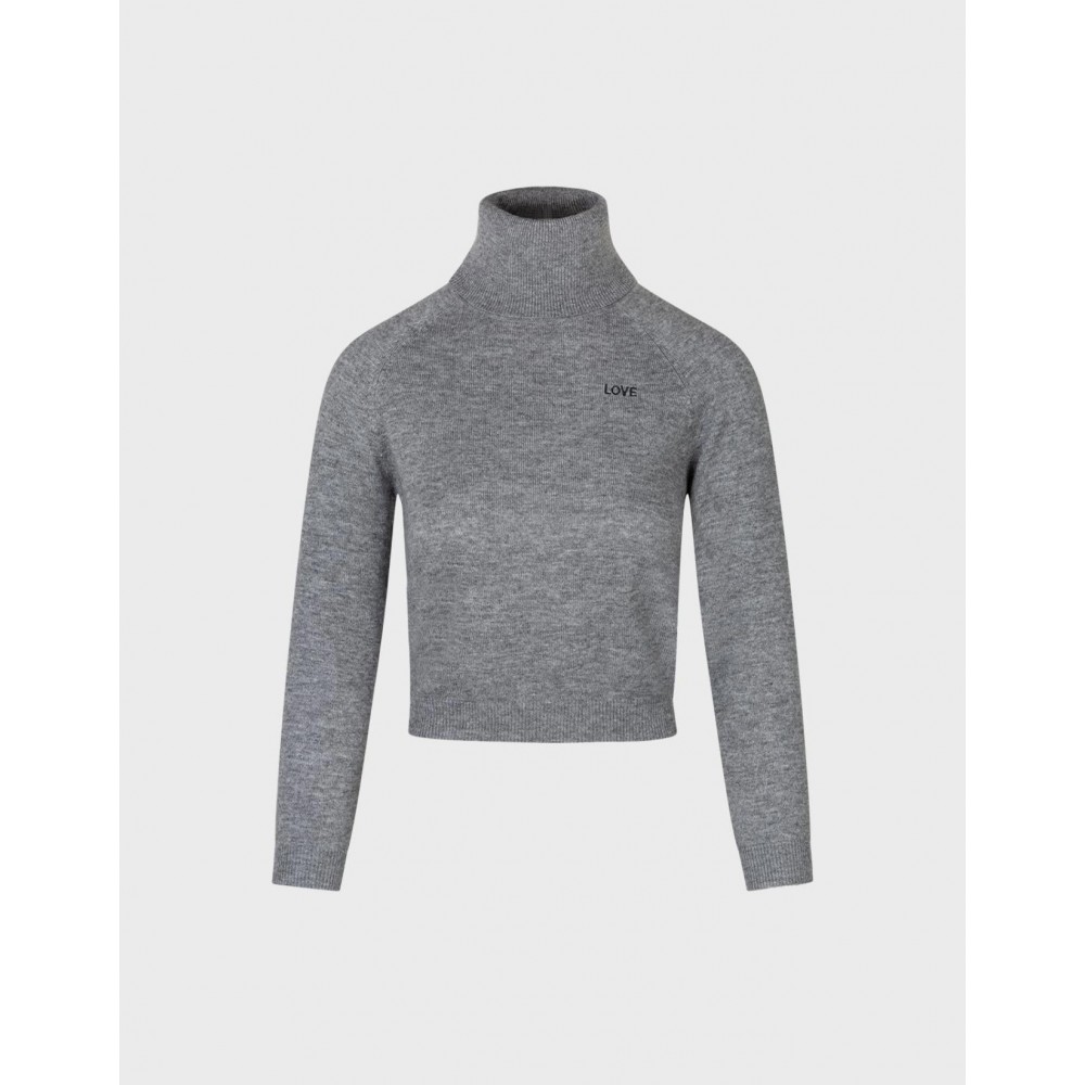 Maglia collo alto in lana merinos con maanica lunga con la scritta LOVE