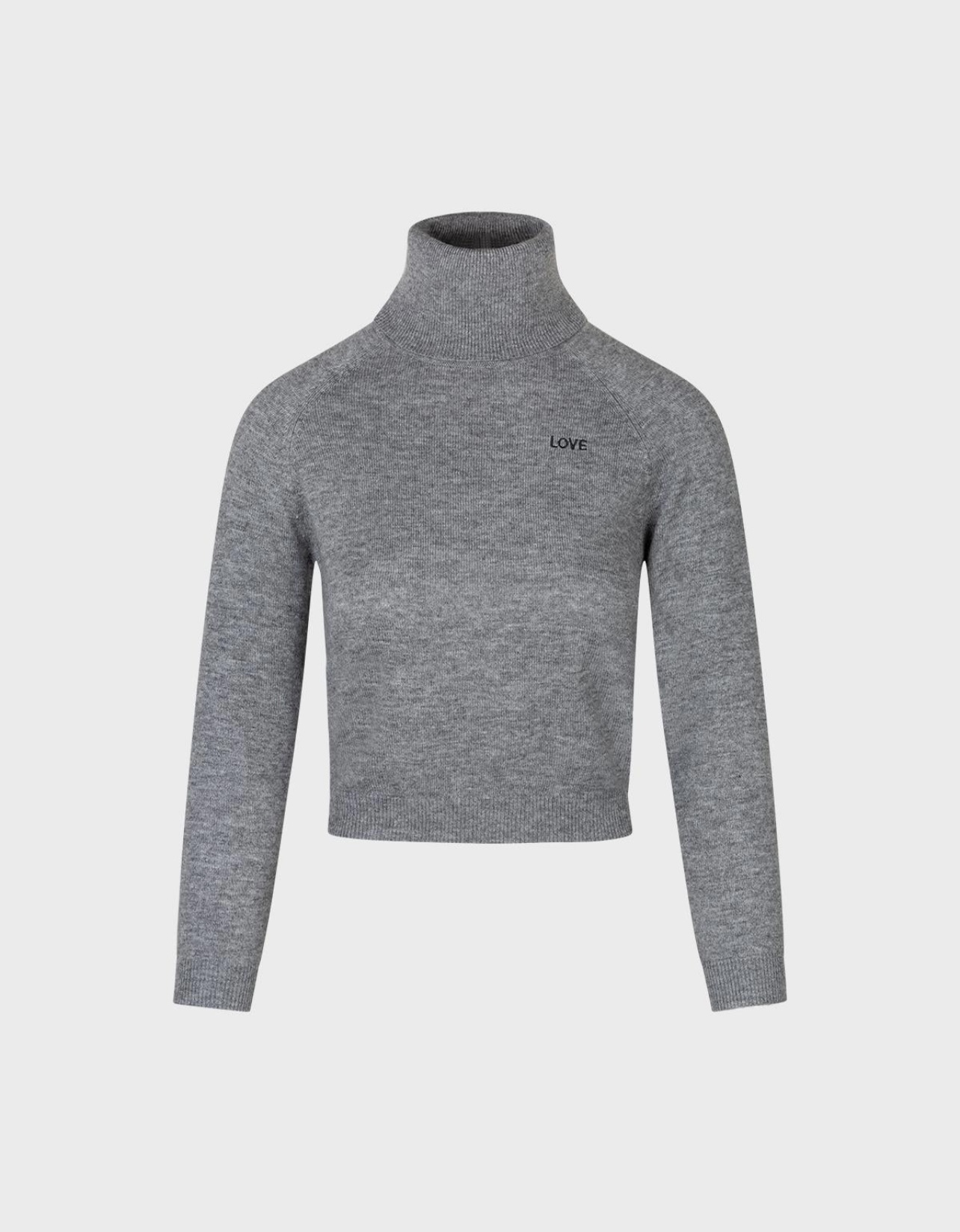 Maglia collo alto in lana merinos con manica lunga con la scritta LOVE