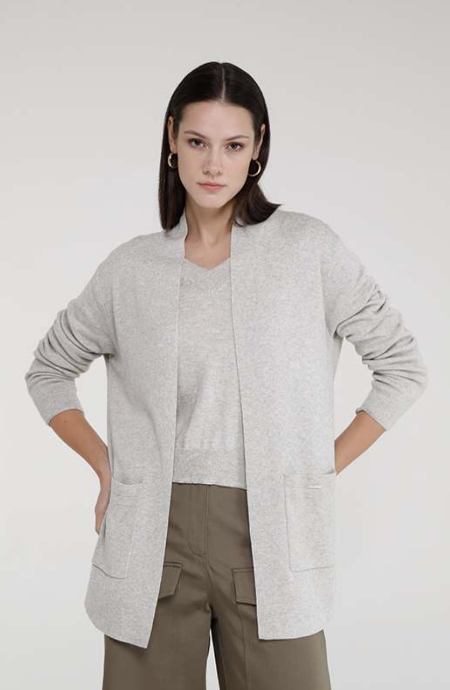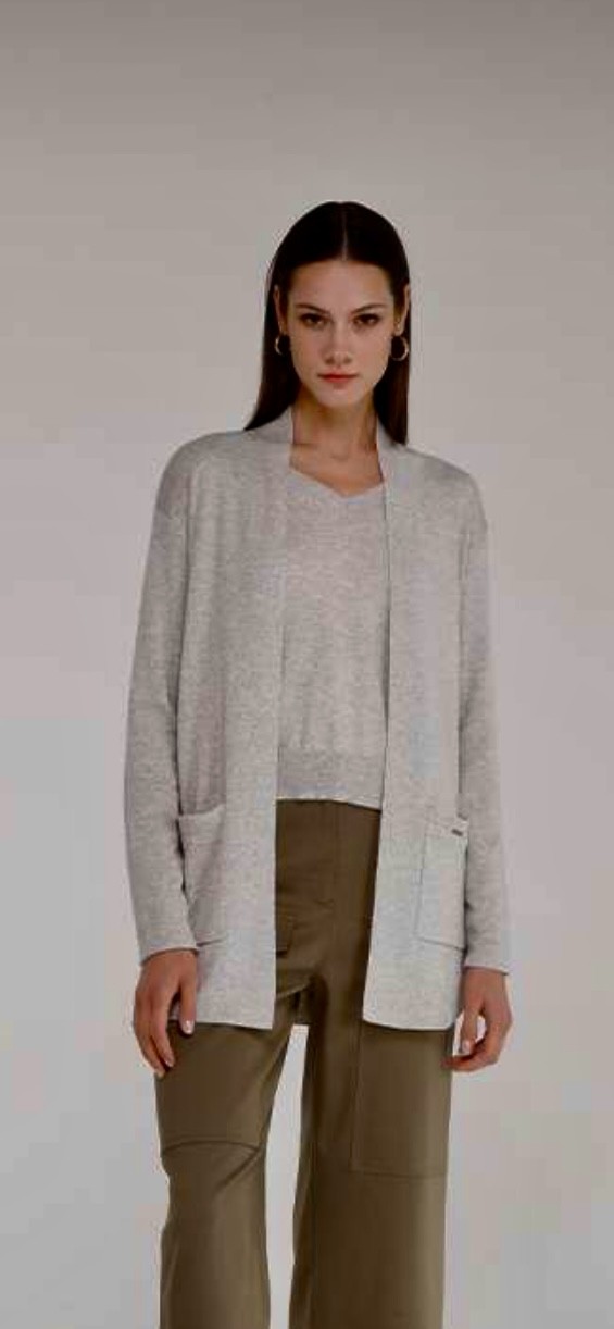 Il maxi cardigan ref. PEACE in stile sale e pepe è un capo versatile e di tendenza, perfetto per aggiungere un tocco di persona