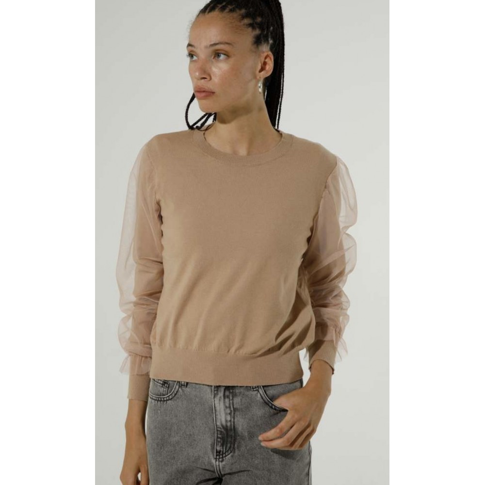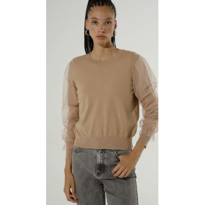REBELMaglia girocollo con maniche in tulle, vestibilità aderente