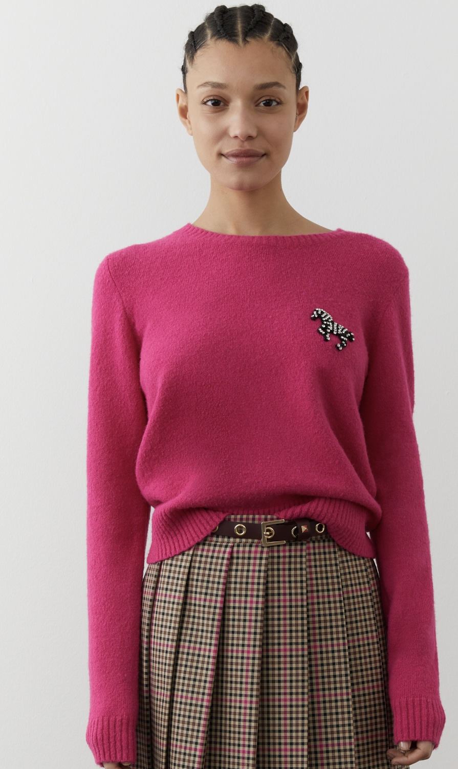 Maglia girocollo in misto alpaca linea morbida e avvolgente..decorata con ricami e applicazioni