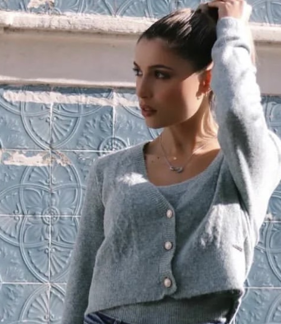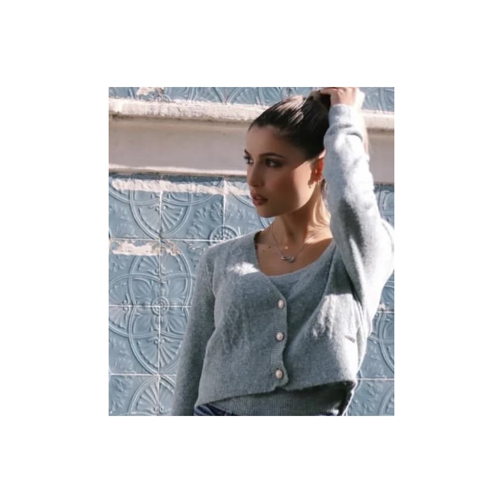 Twinseet in lana mohair top semplice e cardigan con scollo a V con bottoni gioiello
