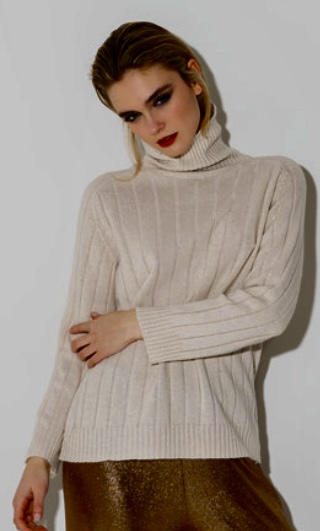 Maglia dolce vita in misto lana e cashmir collo alto,maniche lunghe scese...