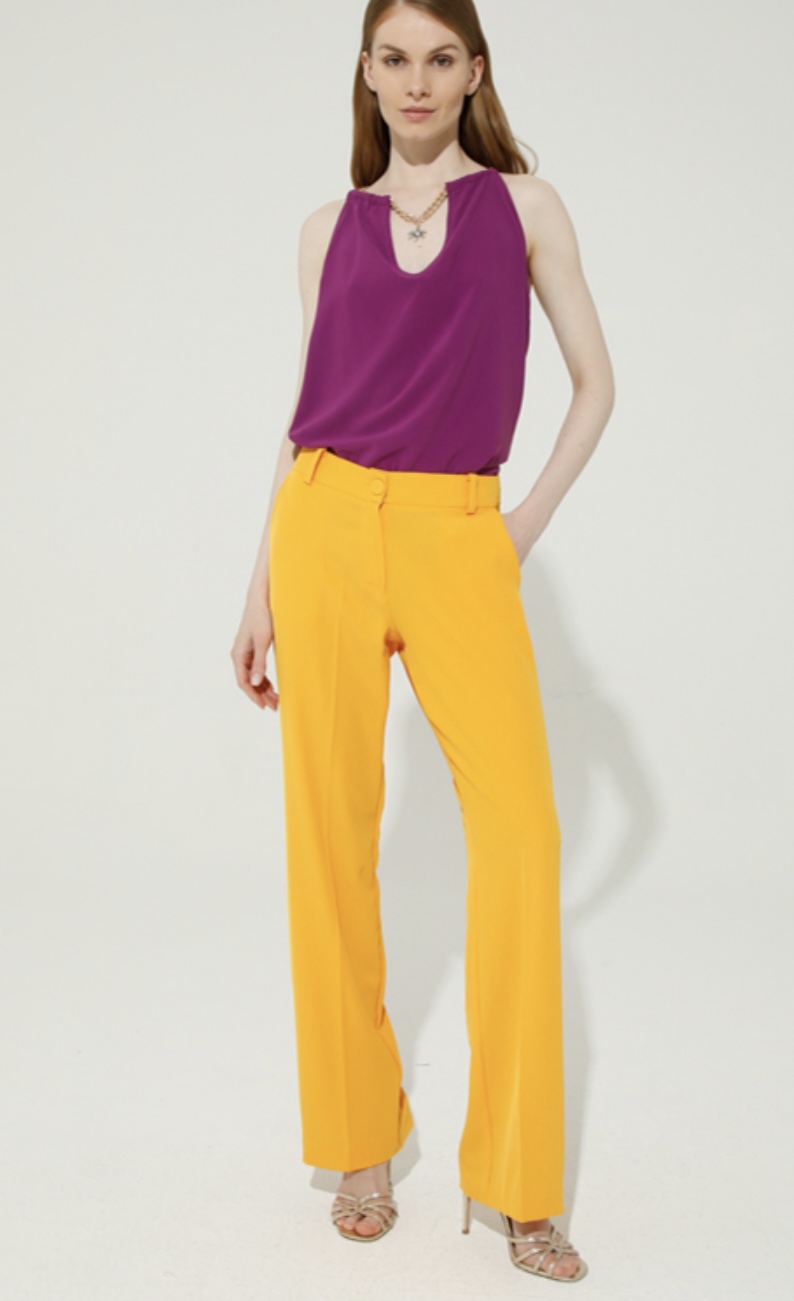 Pantalone elegante palazzo tinta unita è un must-have per iun guardaroba contemporaneo e alla moda.La silhouette fluida e allargata del pantalone palazzo offre un look raffinato e sofisticato,ideale per ambienti professionali o eventi serali.la vivace tonalità di giallo e perfetta per aggiungere un tocco di colore e vivacità al tuo ensemble,re ndendo una scelta audace ma allo stesso tempo elegante.