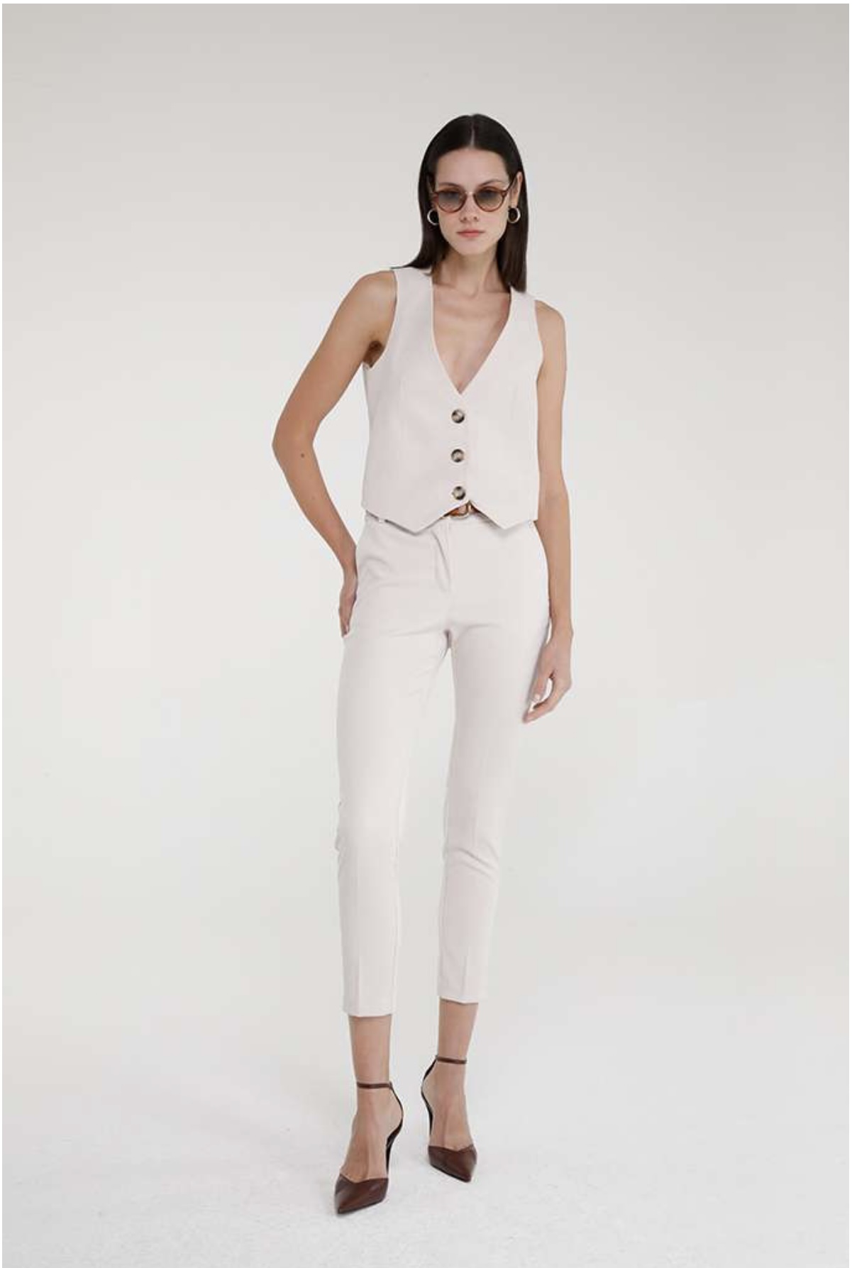 Pantalone SKINNY in velluto stretch dalla linea semiaderente chiusura frontale con zip invisibile e tasche alla francese piega stirata