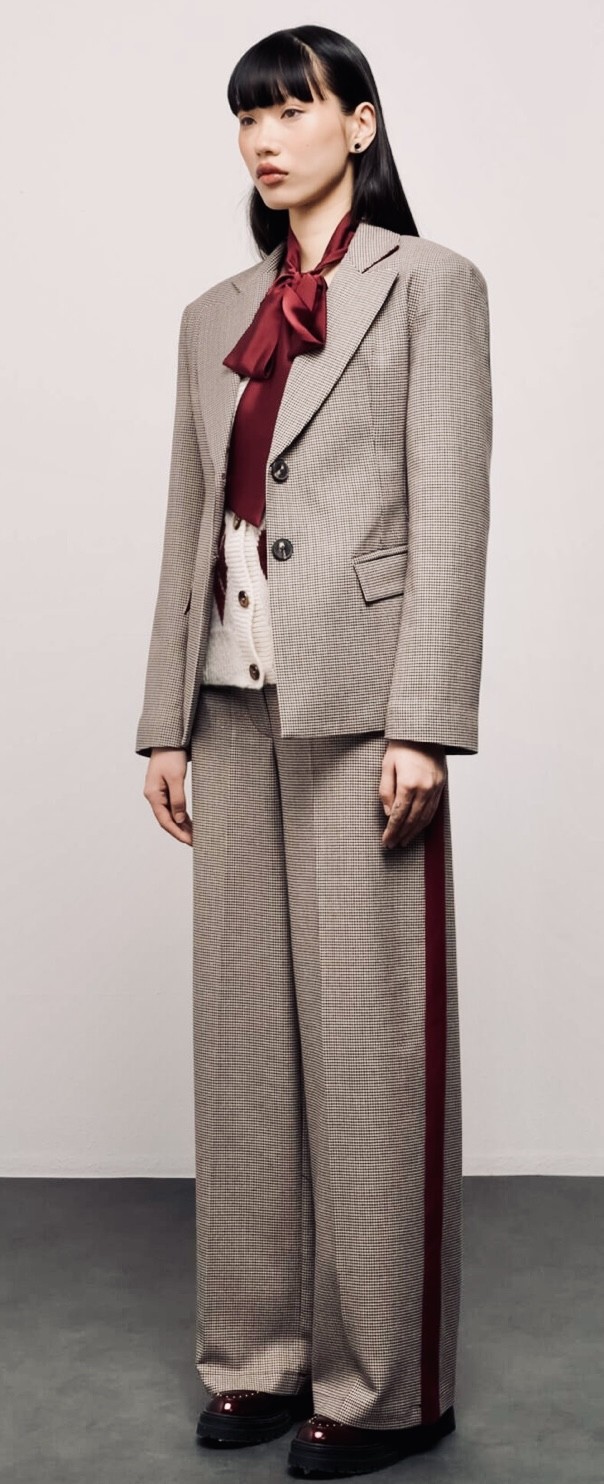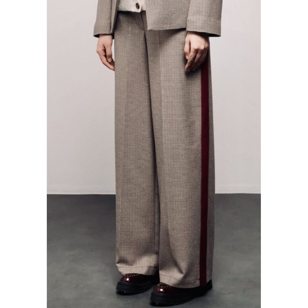 PANTALONI WIDE LEG BERGOGNA/BEIGE
