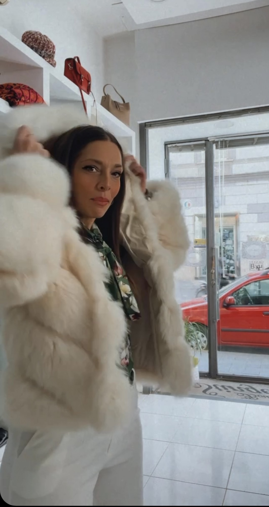 Pelliccia ecologica Bianca con cappuccio.Calda ma leggera e comoda da indossare.Vestibilità corta,si chiude con dwi gancini invi