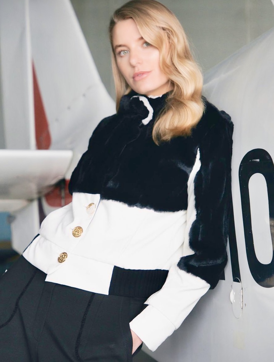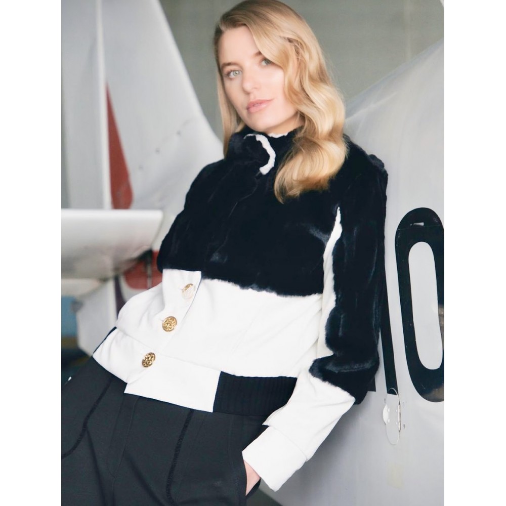 Ecopelliccia bianco e nera con dettaglio in pelle.Chiusa con bottoni.Giacca corta avvolgente per un look invernale